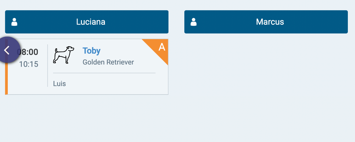 Assim que realizado um agendamento, irá ser criado um card para o nosso cliente, com o nome do seu pet, horário e quando clicarmos nesse card, podemos obter mais informações referente a esse agendamento.